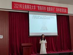 2021年9月12日,我院“青春同伴 健康同行”同伴教育培训活动在睿智3-106报告厅举行。本次活动由365英国上市官网青春健康服务队组织,邀请云南经济管理学院的同学面向21级新生开展有关性教育的知识讲座。