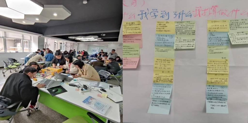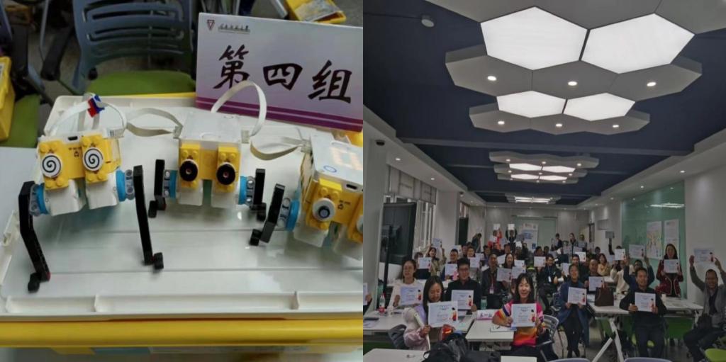 连续两个周末的培训,参训教师由于首次接触STEAM教育理念,培训氛围积极且热烈,通过SWOT分析、学校STEAM教学发展愿景规划等一系列活动的亲身体验,切身感悟了创新人才和学生核心素养培养理念的价值与意义;通过SPIKE-PRIME科创套装尝试搭建“跳跳虫”及“超级清理器”,体会科创套装及乐高5E教学设计的各个环节和流程,掌握了具体的实施要点。教师们积极参与,全身心投入动手实践搭建体验,及时应用所学进行应用、思考、反馈并进行展示分享,真正践行并体验了乐高教育“做中学”“学中思”“寓学于乐”的教育理念,从中感受到任务驱动的培训模式引发的教育思想的碰撞。