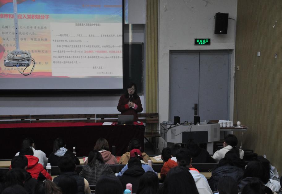 教育学部党委副书记朱静虹同志作了《发展党员工作相关程序及相关要求》的专题辅导,强调发展党员是一项政治性、政策性、原则性、程序性很强的工作,要求各位发展对象务必认真按照党组织的要求做好每一环节,确保程序规范、材料齐备。