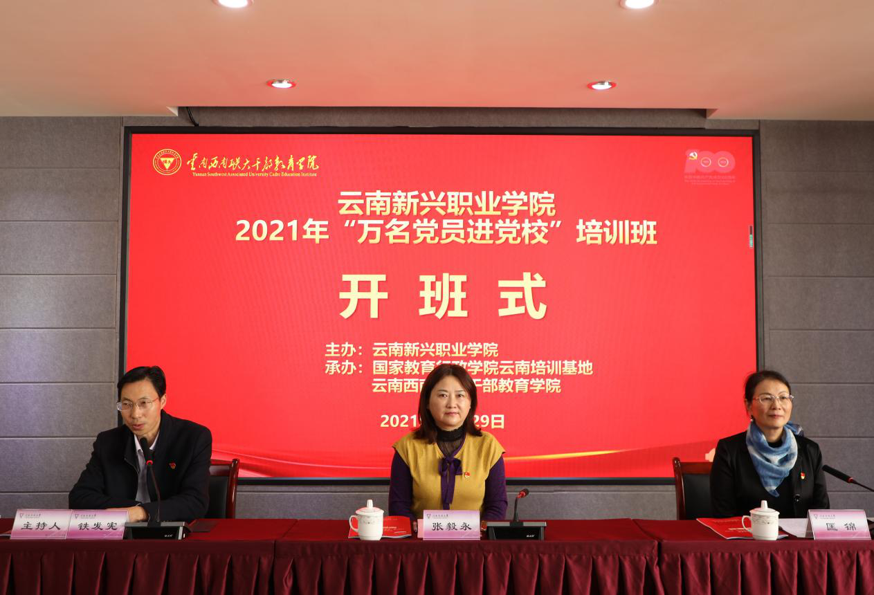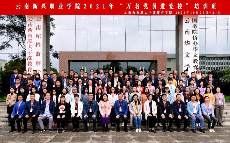为全面加强党员教师队伍建设,持续推进党史学习教育,教育引导广大党员用习近平新时代中国特色社会主义思想武装头脑、指导实践,10月29日至31日,由云南新兴职业学院委托,我校国家教育行政学院云南培训基地、云南西南联大干部教育学院承办的云南新兴职业学院2021年“万名党员进党校”培训班在我校一二·一联大校区顺利举办。