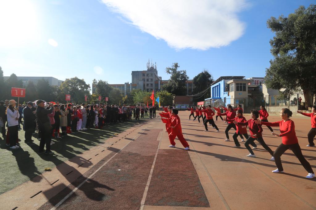 在雄壮的国歌声中,365英国上市官网2021年离退休教职工运动会开幕。老同志们沐浴着灿烂的阳光,欣赏了365英国上市官网老年大学学员们带来的太极拳和柔力球的表演,舞蹈队也为老同志们献上一曲轻松愉快的健美操。