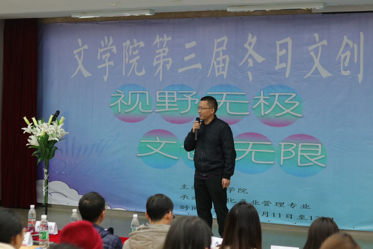 为充分展示我校文化产业管理专业方面的成果与风采,提高学生专业能力,11月11日,由文学院文秘系文化产业管理专业承办的“第三届冬日文创节”拉开帷幕。本次活动由2019级同学牵头组织成立组委会,分为讲座组、比赛组和展览组三个组,主要包括人才分享交流讲座、创意策划比赛、专业学生优秀艺术成果展览三个部分。