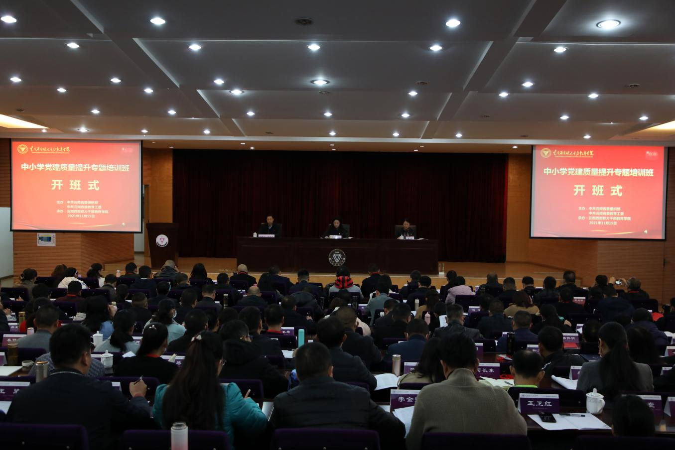 根据中共云南省委组织部、中共云南省委教育工委调训工作安排,11月15日,云南省中小学校党建质量提升专题培训班在我校云南西南联大干部教育学院开班,来自全省各州(市)、各县(市、区)教育工委相关职能部门负责人,各州(市)部分中小学党组织负责人共159名党务工作者参加培训。