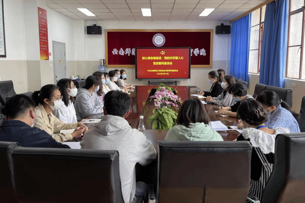 5月13日下午,职业技术教育学院党委在一二·一西南联大校区召开“初心使命催奋进 党的关怀暖人心”党员慰问座谈会,学院党委书记刘虹,副书记向斯楠,全体党支部书记、辅导员、组织员和学生党员代表参会。会议由学院党委副书记向斯楠主持。