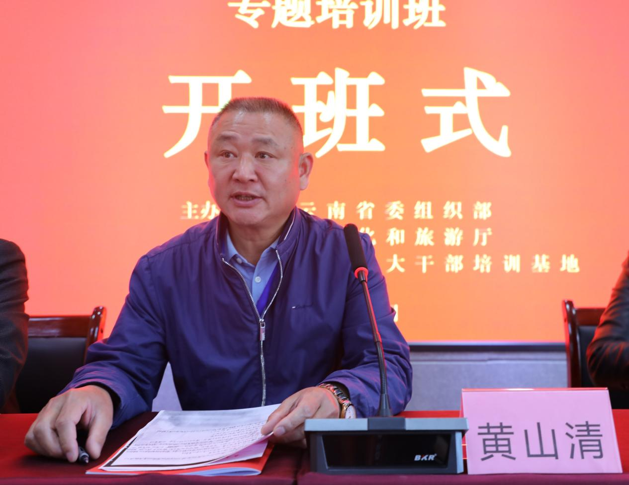 云南省文化和旅游厅市场管理处二级调研员黄山清在动员讲话时强调,要充分认识当前优化营商环境工作的重要性,新冠肺炎疫情发生以来,全省文化旅游行业受到较大冲击,文旅企业在加大投入、开拓市场、转型升级等方面,需要进一步解决好能力不足、信心不足、动力不足的问题。今年以来,省里相继出台文旅行业纾困帮扶措施,深化“放管服”改革工作要点等,通过进一步优化营商环境,帮助企业恢复信心,稳岗就业,提升市场主体内生动力,提升市场主体倍增计划落实,因此举办此次培训班正逢其时。黄山清结合国家和云南省文旅融合工作部署,对本期培训提出了3点要求:一是全体参训学员要充分认识开展文化和旅游融合发展培训班的目的意义,坚持问题导向,聚焦推动云南省文旅产业融合发展关键和主题,坚持改革创新、示范引领,以旅彰文、以文促旅;二是要抓好培训内容的落实,围绕专题讲座认真思考,在现场教学中体验感受思考,在分享交流中学习互鉴,确保学有所成;三是要抓好培训纪律的落实,树立学员意识,遵守培训纪律,端正学习态度,严格遵守学习培训和廉洁自律的各项规定,确保培训圆满举行。