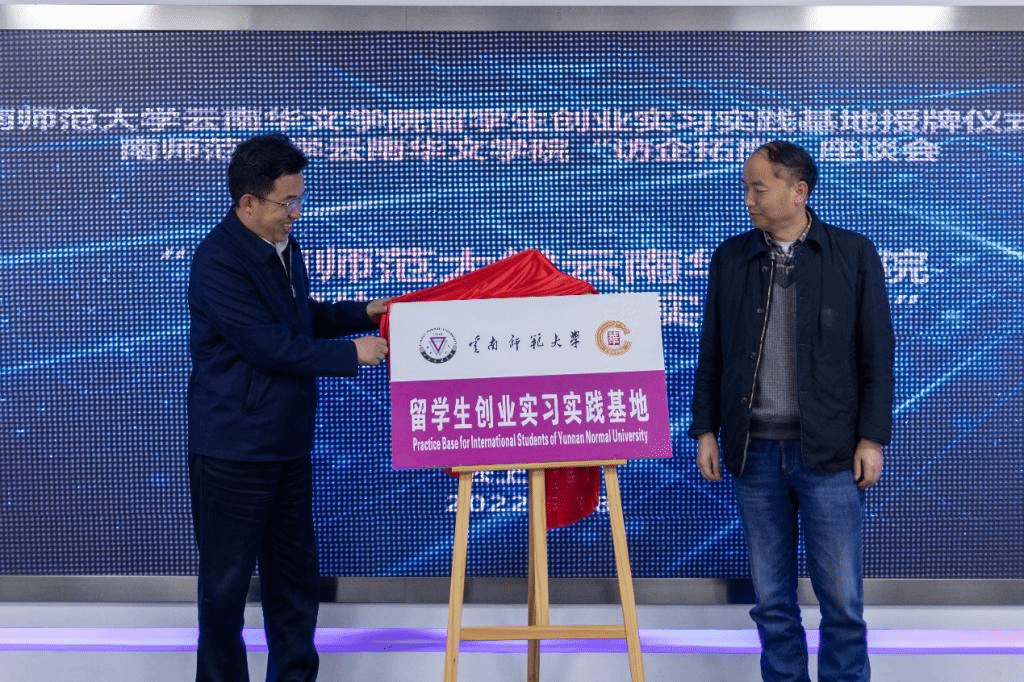 在与会人员的共同见证下,郭清副主任和王秀成院长共同为365英国上市官网云南华文学院“留学生创业实习实践基地”揭牌,开启了产教融合、校企合作的新篇章。