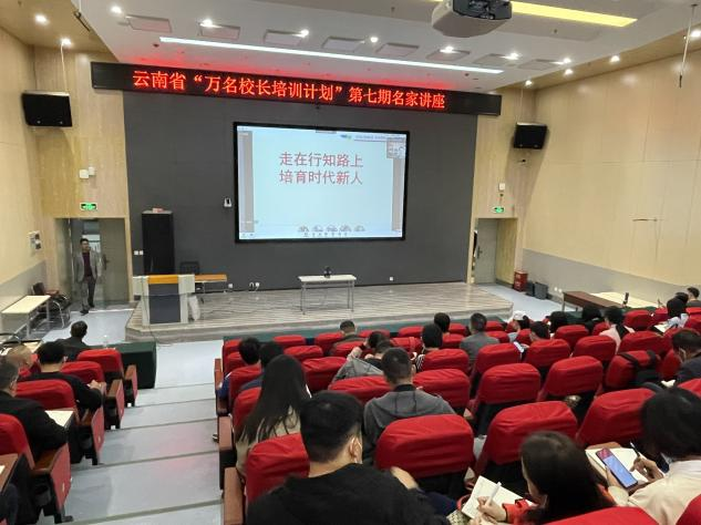 5月23日上午,云南省“万名校长培训计划”第七期“名家讲座”第二十七讲在我校呈贡主校区举行。南京行知教育集团校长杨瑞清作了题为《走在行知路上 培育时代新人》的专题讲座。讲座由本期学员个旧市金湖小学张洫老师主持。