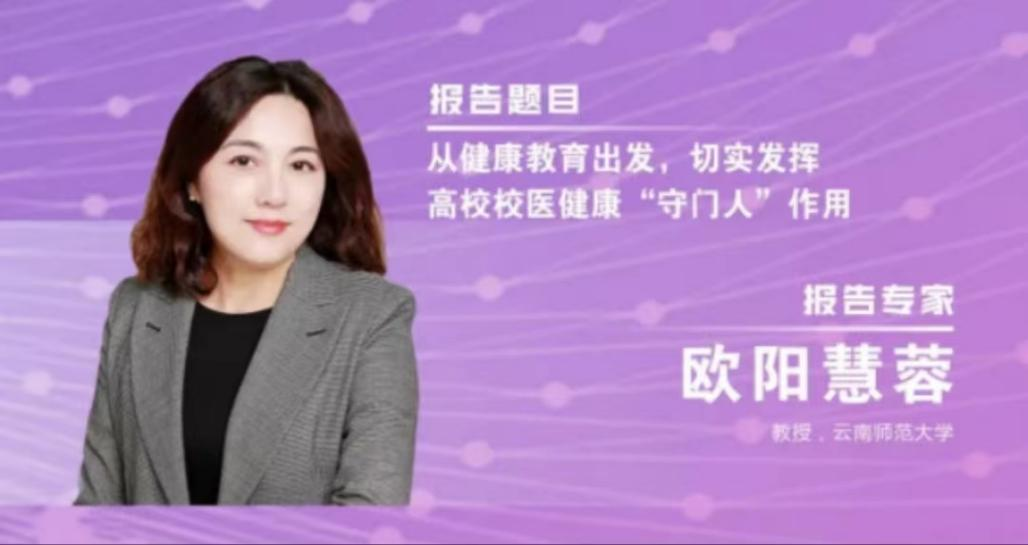 我校校医院院长、教育部全国高校健康教育教学指导委员会委员欧阳慧蓉作为本次论坛唯一受邀的全国高校校医院专家,围绕“新冠疫情与高校健康教育”主题,结合长期从事基层一线健康教育的理论思考和实践经验,做了《从健康教育出发,切实发挥高校校医健康“守门人”作用》的报告,展示了我校健康教育工作的综合实力,获得了同行的高度赞扬。