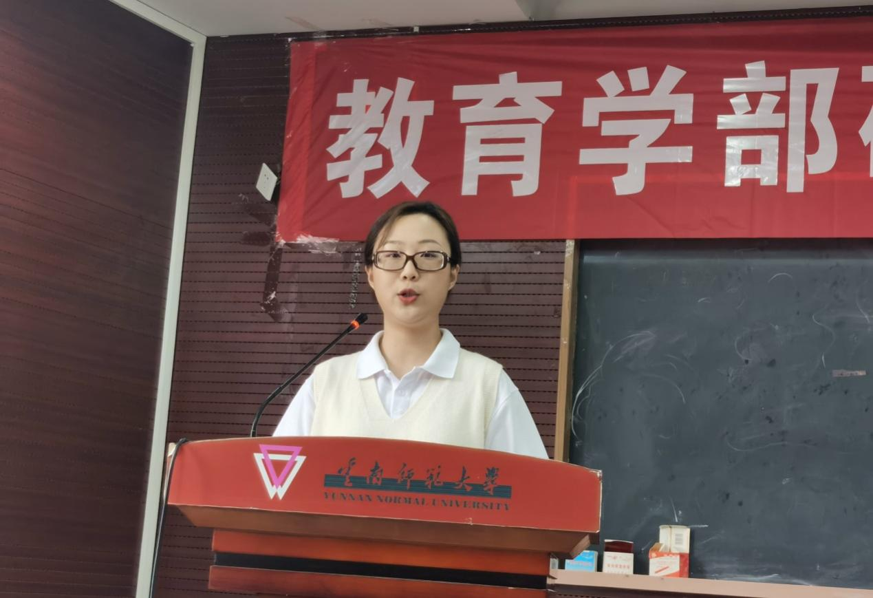 2021级应用心理专业田静娴同学作为团员代表发言。她认为合唱的魅力就在于它能让合唱者体会到艺术之美、和谐之美、生活之美,合唱团的成立给了大家一个展示自我的舞台,希望通过参加合唱团,能够丰富自己的校园生活,为宝贵的青春岁月增添一笔靓丽的色彩。