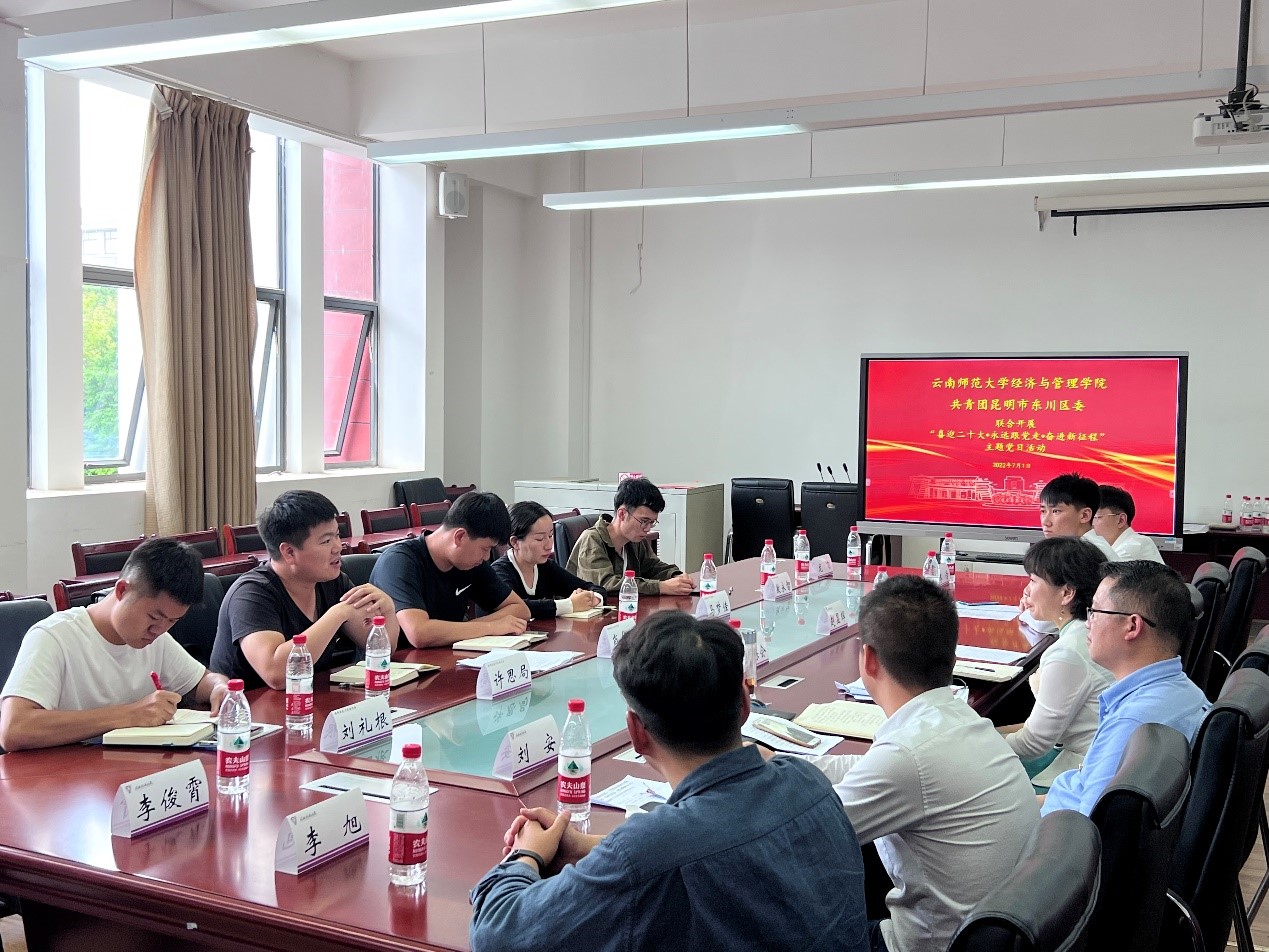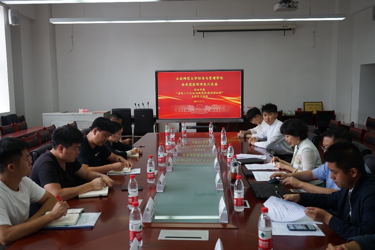 在中国共产党成立101周年之际,7月1日下午,我校经济与管理学院和共青团昆明市东川区委在经济与管理学院会议室联合开展主题党日、团日活动。