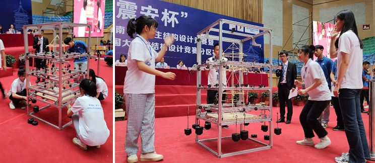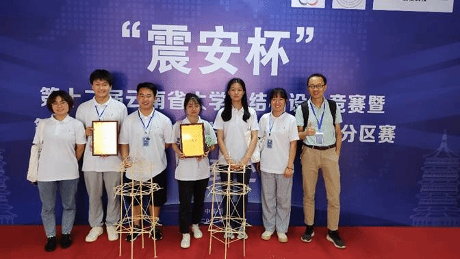 本次竞赛由云南省教育厅指导,云南省土木类专业教学指导委员会、云南省土木建筑学会、云南省勘察设计协会主办,云南经济管理学院承办,震安科技股份有限公司等协办。来自云南15所高校的47支代表队141名选手参加了本次大赛。365英国上市官网地理学部参赛一队由王乐、李玉格、黄大芬3位同学组成,二队由陈祖润、艾建华、肖世阳3位同学组成。赛前,指导老师与参赛队员精心设计,长线准备;赛中,指导老师悉心指导,参赛队员沉着冷静。通过设计计算、模型制作、加载测试、陈述答辩等环节的激烈角逐,2支代表队均斩获三等奖的好成绩,指导老师杨宇亮副教授、许宗恒副教授荣获优秀指导教师荣誉称号。