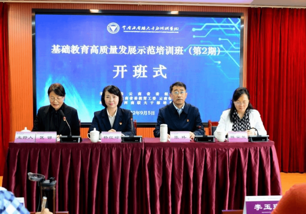 9月5日,云南省“基础教育高质量发展示范培训班(第2期)”在我校一二一西南联大校区开班。培训紧紧围绕深入学习习近平总书记关于教育的重要论述和考察调研西南联大旧址重要指示精神,立足全面推进云南基础教育高质量发展,分析研判我省基础教育发展现状,从义务教育优质均衡发展、双减双升、意识形态建设、宗教政策、财务管理、劳动教育、德育实践、作业质量提升及办学治校过程中的重点热点问题等方面进行学习和研讨。