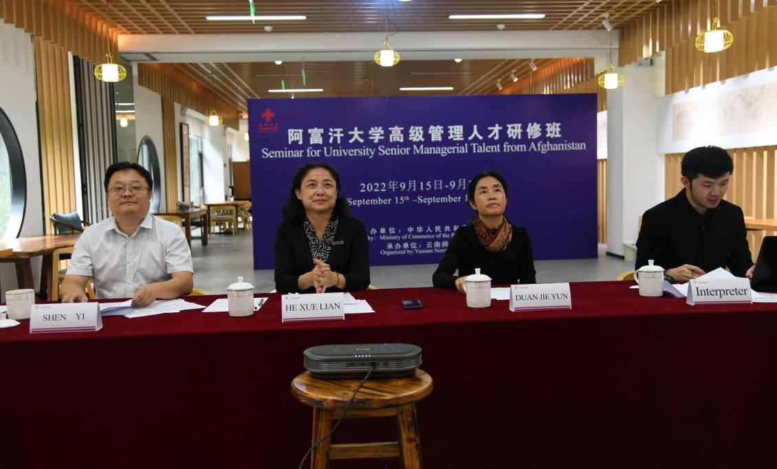 开班仪式由汉语国际推广师资培训基地(昆明)常务副主任沈毅教授主持。华文学院常务副院长段洁云和来自阿富汗高教部、喀布尔大学、喀布尔理工大学、喀布尔师范大学、喀布尔医科大学的25名教育官员、校长、骨干教师出席了开班仪式。