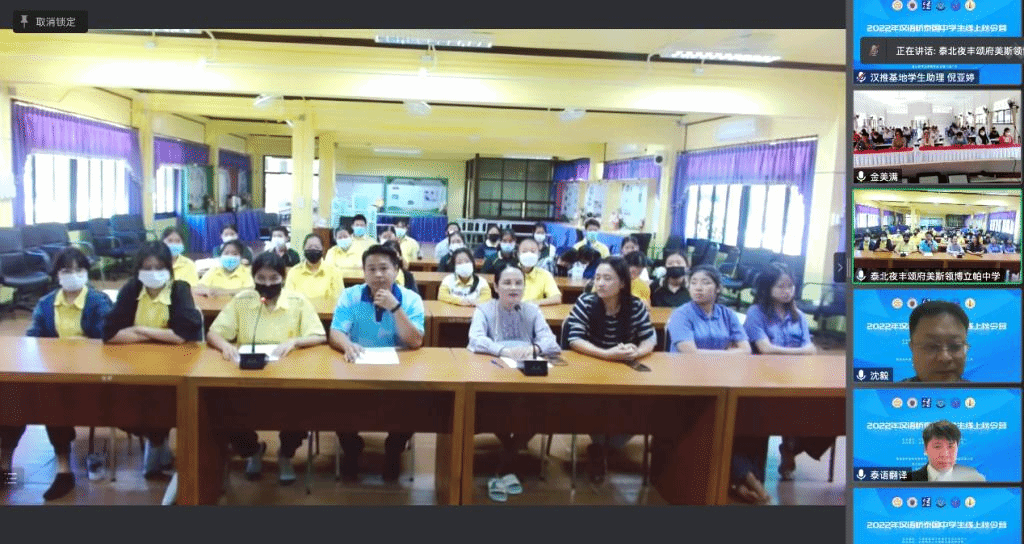博立帕中学于晨代表学生发言。她说,同学们非常喜欢课程安排,尤其是中国传统文化、民间故事、传统美食、中泰跨文化交际讲座以及中国剪纸、中国结、武术等。课上与中国老师在线交流是同学们最期待的环节,不但能学习地道中文,还能得到中国老师的直接指导,让大家受益匪浅。