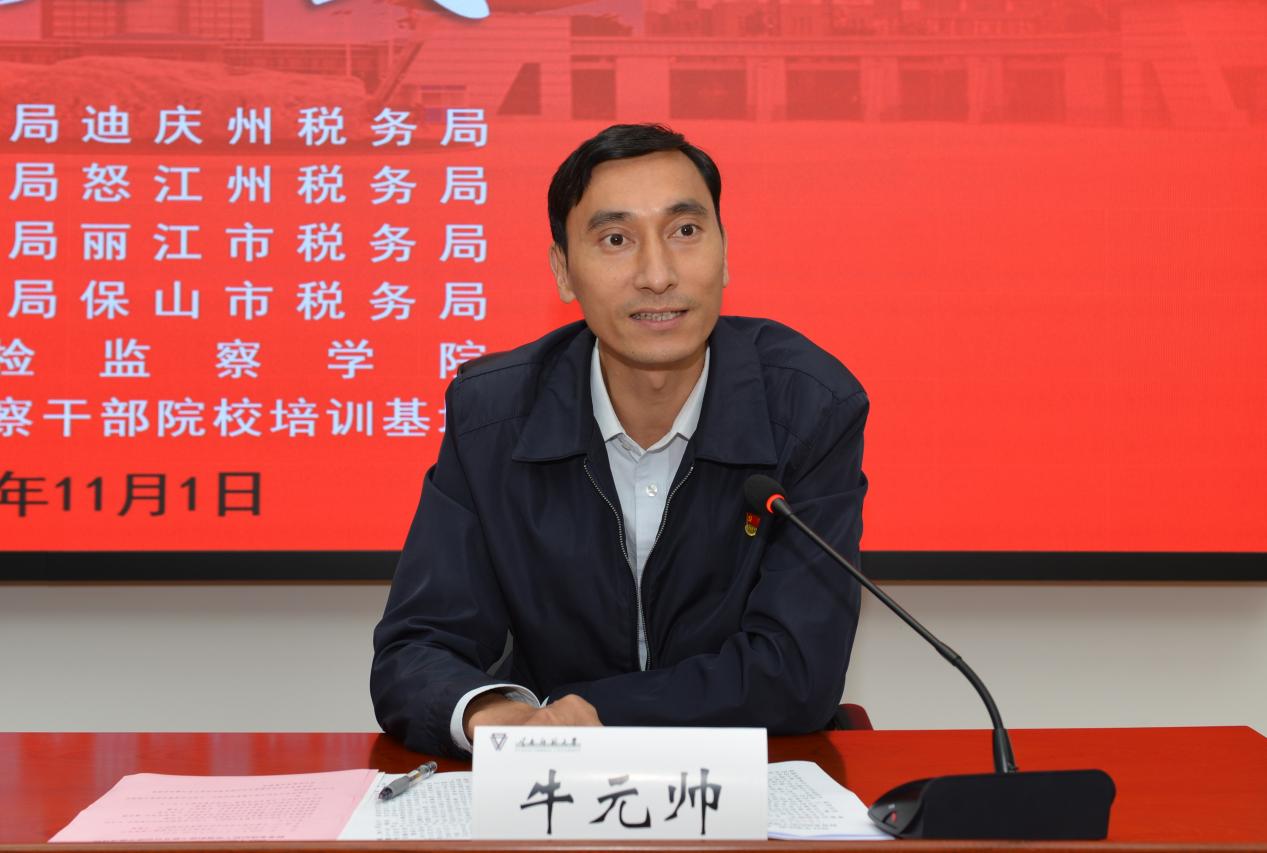 10月31日上午举行开班式。职业技术教育学院副院长王黎智主持。职业技术教育学院院长兼云南纪检监察学院执行副院长牛元帅致辞。他对参训的纪检干部表示热烈欢迎,希望大家以此次培训为契机,把思想和行动统一到贯彻党的二十大精神上来,坚定贯彻党的自我革命战略部署,坚持全面从严治党战略方针,更好发挥税收在国家治理中的基础性、支柱性、保障性作用,为全面建设社会主义现代化国家、全面推进中华民族伟大复兴积极贡献税务力量。