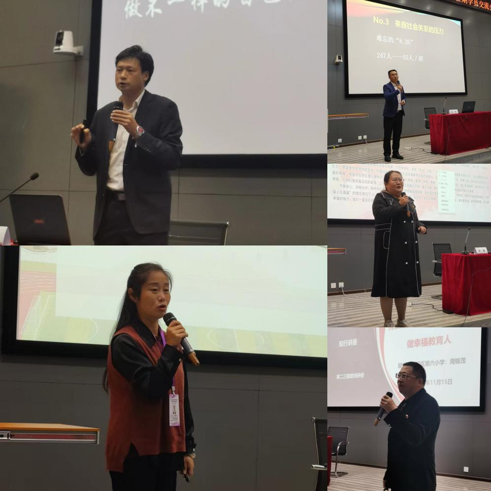 11月15日,云南省“万名校长培训计划”第八期“知行讲座”往期优秀学员学习交流活动在我校呈贡主校区举行。第三期和第四期五位优秀学员为第八期学员作了题为《聚名师智慧 创教育新篇》的专题分享交流。