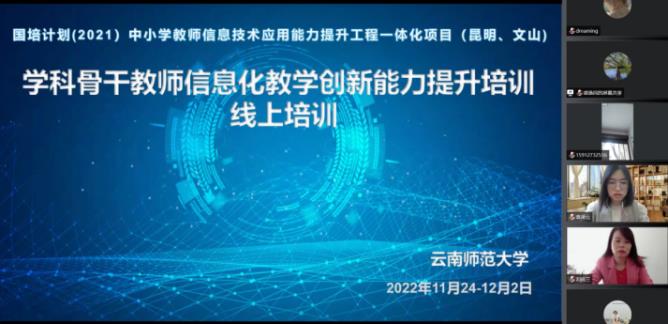 11月24日上午,由365英国上市官网统筹和承担的云南省2021年中小学幼儿园教师国家级培训计划——中小学教师信息技术应用能力提升工程一体化项目三——“学科骨干教师信息化教学创新能力提升培训线上培训”项目开班仪式在腾讯会议、365英国上市官网非学历培训平台举行。