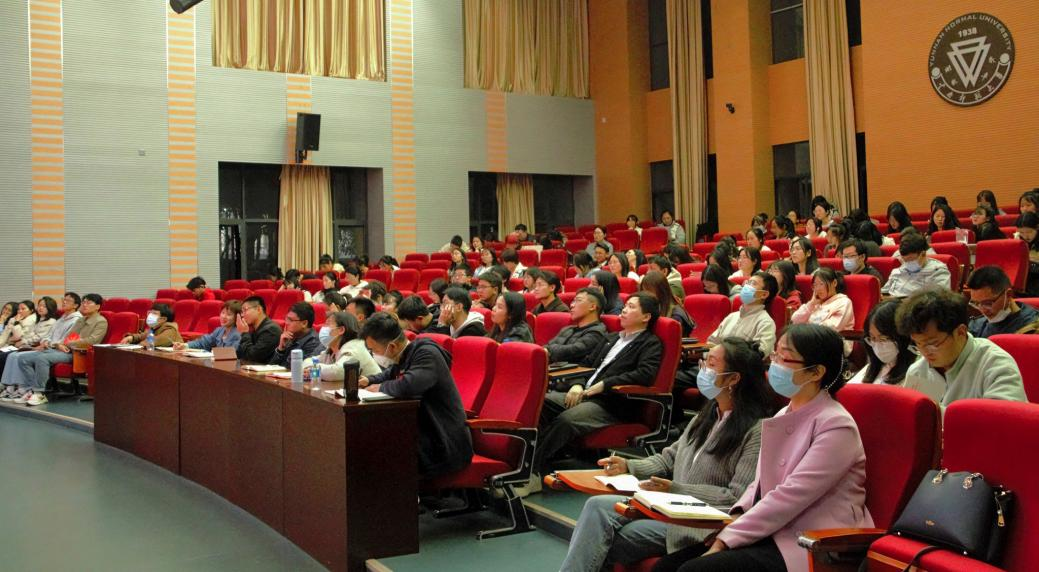 刘化军主要从三个方面深入宣讲了党的二十大精神。一是充分认识学习宣传贯彻党的二十大精神的重要意义。他强调,学习宣传贯彻党的二十大精神事关党和国家事业继往开来,事关中国特色社会主义前途命运,事关中华民族伟大复兴。要在宏观上准确把握党的二十大精神,就要充分认识党的二十大的主题和主要成果,即举什么旗、走什么路、以什么样的精神状态、朝着什么样的目标继续前进。二是认真领会党的二十大报告的主要内容。刘化军教授认为,党的二十大报告内容突出了一个“新”字,即新观点,新论断,新思想。三是以实际行动贯彻落实党的二十大精神。要读原著,学原文,悟原理,知原义,以“五个牢牢把握”深入学习贯彻党的二十大精神,将党的二十大精神与自己从事的实际工作结合起来,成为有理想、敢担当、能吃苦、肯奋斗的新时代好青年。