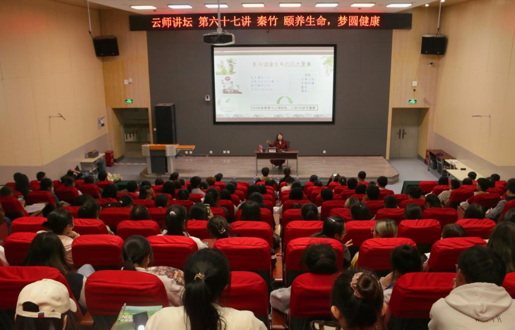 3月10日晚,由校团委承办的“云师讲坛”第六十七讲在我校呈贡主校区教师教育国家级实验教学示范中心214报告厅举行。全国高等中医药学校教学名师秦竹教授应邀为200余名师生带来“颐养生命 梦圆健康”主题讲座,校团委书记郑伟俊主持讲座。