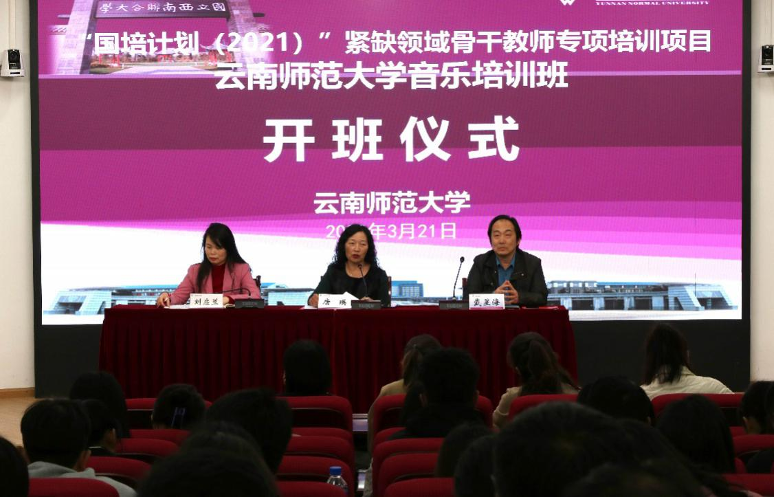 3月21日,由继续教育学院承办的“国培计划(2021)”紧缺领域骨干教师专项培训音体美骨干教师培训项目音乐班,在我校一二•一西南联大校区顺利开班。继续教育学院院长唐瑛,副院长刘应兰,音乐学科专家戴星海,项目管理团队以及来自全省16个州市的150名教师参加开班仪式。刘应兰主持仪式。