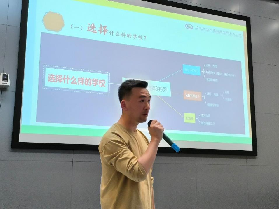 李彤以“划现在,创未来”为主题,围绕“选择什么样的学校,学校青睐什么样的老师,规划自己的教育之路,付诸实际未来可期”四个方面展开。他以七彩云南小学作为鲜活案例,从大学生未来求职目标谈起,讲到基础教育学校的用人要求,同时强调了“自信阳光、有爱心、好学上进”的重要性,并督促同学们尽早规划自己要走的路,积累未来“选择”的资本。