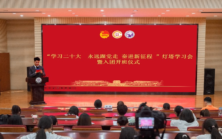 表彰会结束后,学院以“点亮灯塔”“灯塔之光”“青春筑梦”为三部曲,采用微党课、主题分享、歌曲快闪的方式开展了“学习二十大 永远跟党走 奋进新征程”灯塔学习会。马克思主义学院陈林老师为全体团员青年上了一堂《学习习近平总书记关于青年工作的重要论述》的主题团课,教育引导广大青年自觉传承和弘扬五四精神,继承和发扬“党有号召、团有行动”的光荣传统,以更加饱满的热情和昂扬的斗志,在学习上、工作上开拓进取、奋勇争先,谱写更加绚丽的青春华章。
