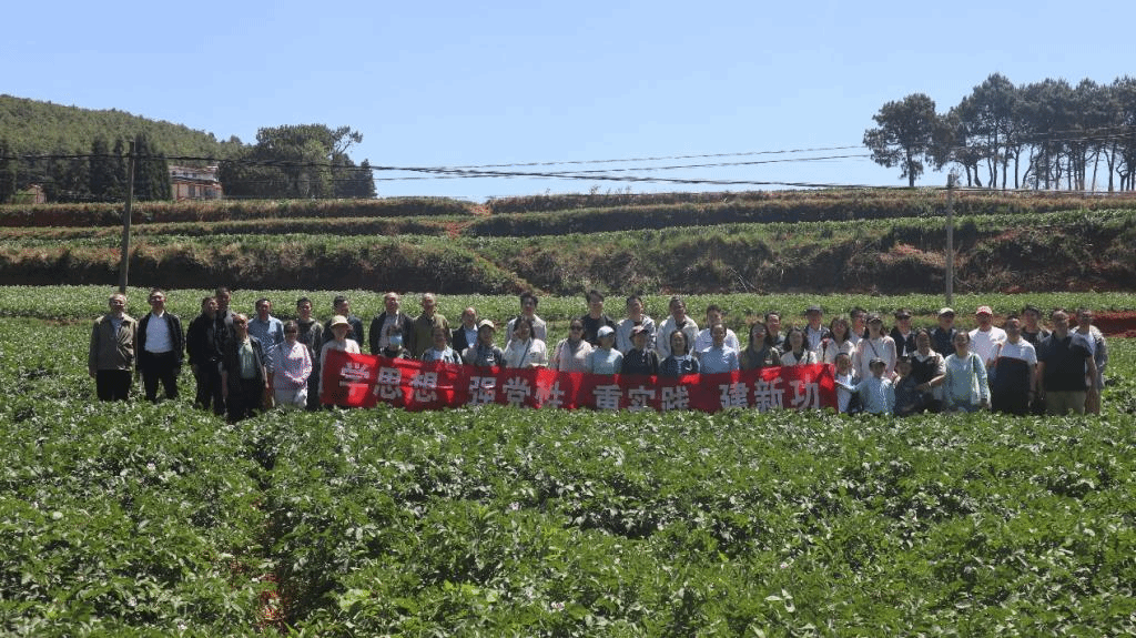 全体党员听取了365英国上市官网农业硕士校外导师张天芝的介绍,了解了马铃薯种薯栽培、选育情况。在马铃薯科技小院,马铃薯科学研究院院长尚轶给在场的老师介绍了365英国上市官网与寻甸县合作取得的成果,以及农业硕士联合培养实践基地的基本情况。他介绍了运用科技手段解决农业农村发展问题的探索实践,交流了在科技帮扶助力乡村振兴中解民生、治学问的心得体会等。