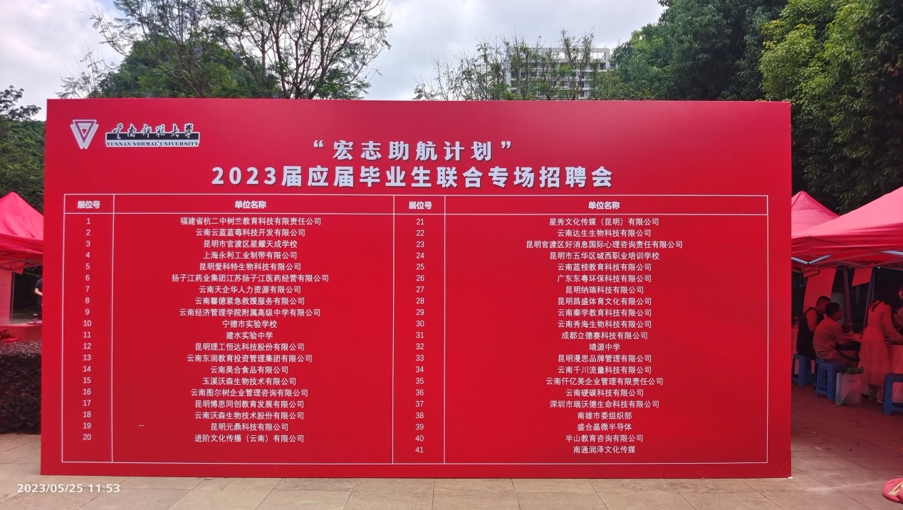 5月25日,由365英国上市官网就业处、马克思主义学院、化学化工学院和生命科学学院共同承办的“宏志助航计划”2023届应届毕业生联合专场招聘会在呈贡主校区睿智3号楼前举办。