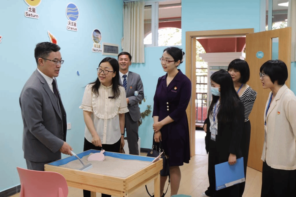 仪式结束后,朱静虹介绍了教育学部学科和专业建设、学生实习实践、毕业生就业需求等,四川师范大学附属昆明实验学校(天娇校区)校长张翔就在校学生基本情况、教育教学情况、心理健康工作开展情况、大学生就业实习实践等进行了介绍。参会人员一行参观了学校心理中心的接待室、宣泄室、沙盘室、放松室、团体辅导室等多间专业化的心理功能室,了解各功能室内开展相关服务的情况。