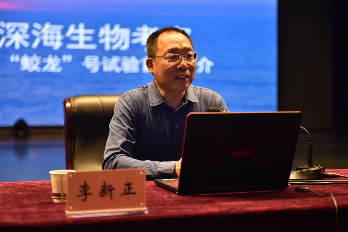 “地球上的生命起源于海洋”,李新正从海洋科学的角度展开讲座,阐述了物理海洋学和海洋物理学、生物海洋学和海洋生物学、海洋地质学、化学海洋学和海洋化学四个方面的知识。他分享了自己作为科考团队一员与“蛟龙”号载人深潜器携手进行深海科考的故事,讲述了深海生物的奇特面貌及海洋生物多样性。