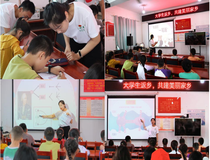 此次服务活动中,团队成员们积极发挥数学专业特色和师范专业优势,将数学知识和“减负不减质”的核心理念贯穿到丰富多彩的活动中,寓教于乐,融学于趣,化教于心。不仅向孩子们科普了数学文化,进行数学启蒙,还组织青少年学习手语操《我真的很不错》,开展绘画和手工活动;队员殷溪悦讲解长征故事,弘扬传播红色文化,引领孩子们争做新时代的好少年;通过小型情景剧的形式普及防溺水、防诈骗知识,守护孩子们度过一个安全的假期。