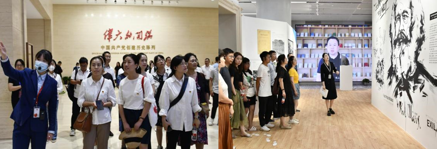 在现场教学环节,参训教师们前往中共一大纪念馆,集体参观了“伟大的开端——中国共产党创建历史”陈列展;赴上海社会科学馆,感受哲学社会科学的魅力,参观了“来自特里尔的问候——马克思生平与著作展”“雄鸡一鸣天下晓——马克思主义在中国的早期传播展”“百年党刊珍本展”,深入了解马克思的人生轨迹和思想历程,重温了马克思主义中国化时代化的历程,加深了对“中国共产党为什么能,中国特色社会主义为什么好,归根到底是马克思主义行,是中国化时代化的马克思主义行”这一科学论断的理解。跟随上海市虹口区委党校武音茜教授寻访北外滩,见证了改革开放的“三次历史性飞跃”,深刻感受到中国共产党人一路秉承初心使命,保持奋斗姿态,团结带领中国人民踏上民族复兴的伟大征程。