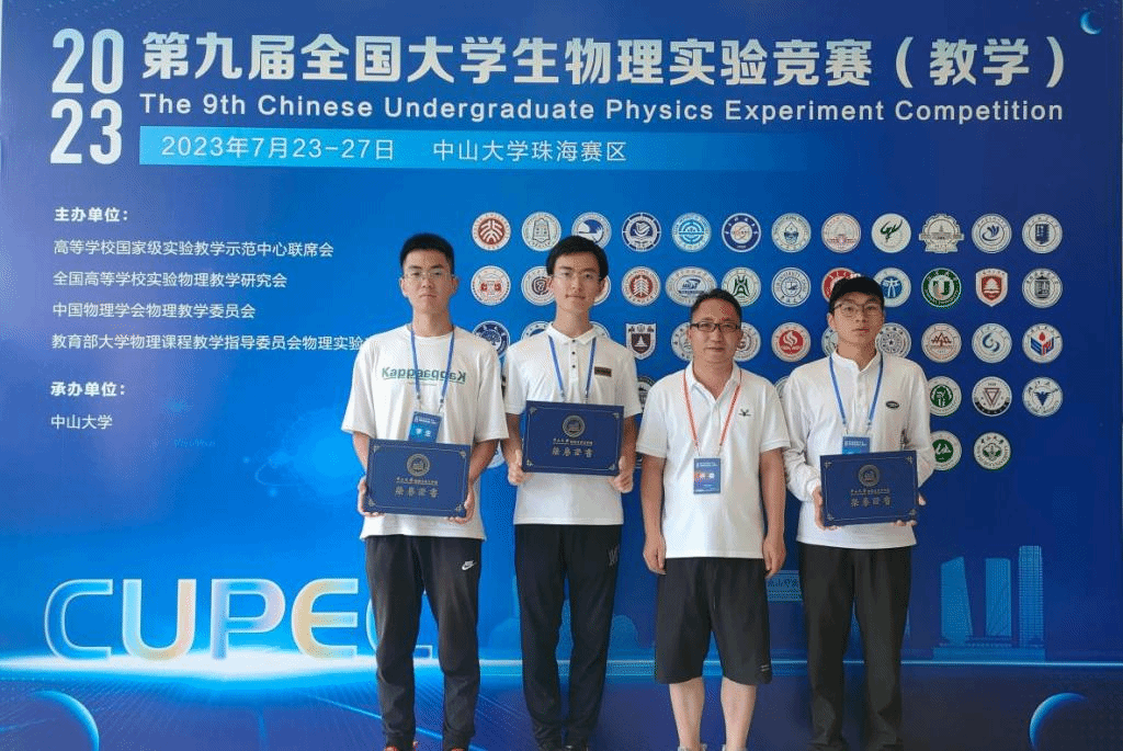 7月23日至7月27日,第九届全国大学生物理实验竞赛(教学)在中山大学广州校区南校园和珠海校区举行。我校物理与电子信息学院2020级本科生杨厚发和杨天基获综合研究性实验二等奖,2021级本科生张世杰获基础性实验三等奖,2021级本科生段源伟获基础性实验三等奖。