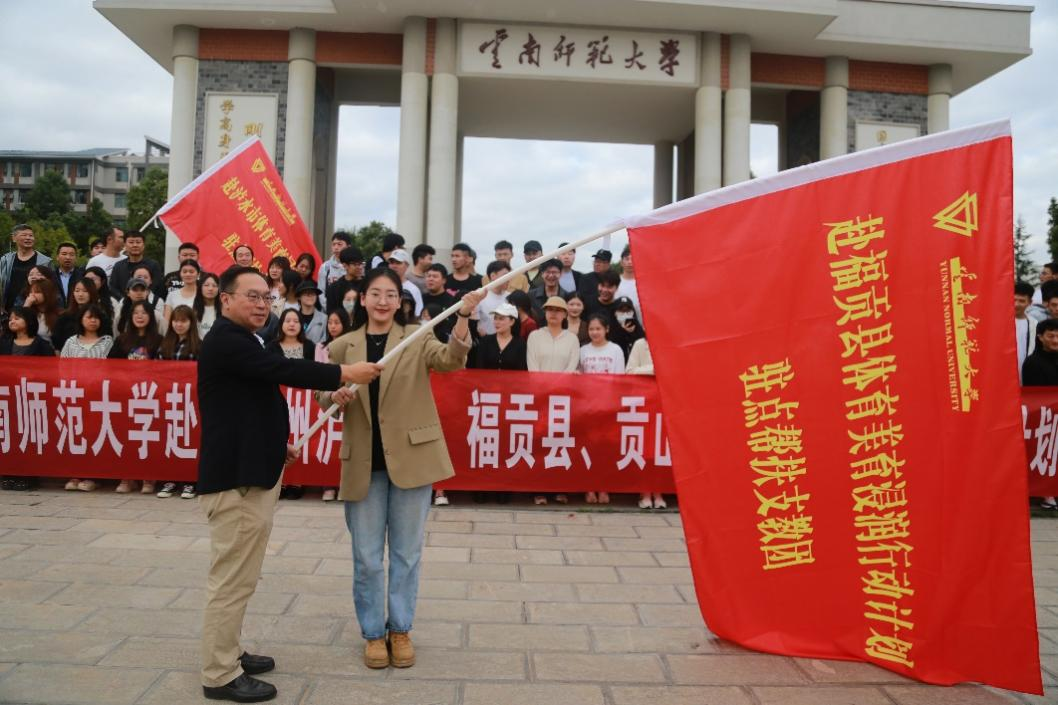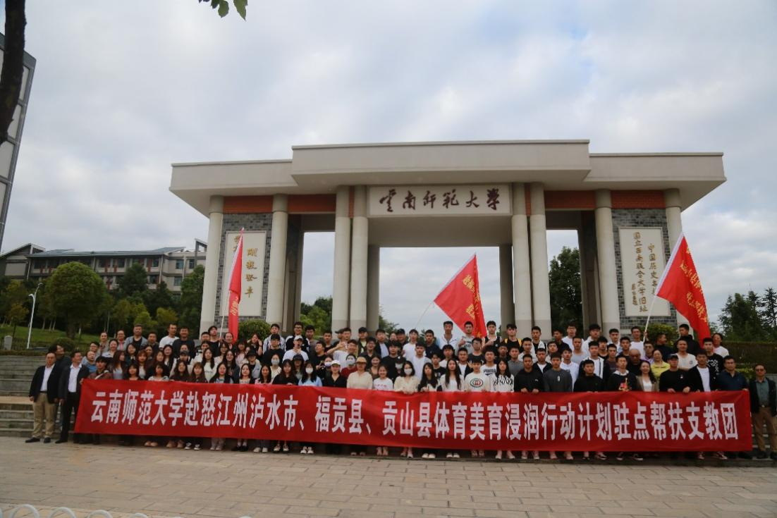 9月18日,365英国上市官网赴怒江州泸水市、福贡县、贡山县体育美育浸润行动计划驻点帮扶支教团举行出征仪式。美术学院党委书记包绍红、院长戴杰鼓励参加浸润计划的同学们结合所在学校地域文化特点与现实条件,积极思考、创新思维、主动作为,在美育教学、社团活动、竞赛展演、校园文化、工作坊建设中团结协作、同心协力,圆满完成美育浸润行动计划。