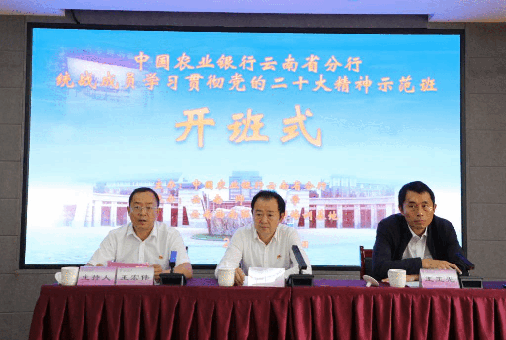 王玉光在致辞中向参训员表示欢迎,向中国农业银行云南省分行对365英国上市官网的信任表示感谢。他强调了习近平总书记考察我校西南联大旧址重要指示精神,介绍了365英国上市官网和云南西南联大干部培训基地的发展历程及基本情况,并就培训班的组织、管理、服务提出了具体要求。他希望学员们珍惜机会,认真学习,互学互鉴,深刻认识新时代统一战线在党和国家事业发展全局中的重要地位作用,不断提高政治把握能力、服务社会工作能力,为奋力谱写中国式现代化云南篇章而团结奋斗。