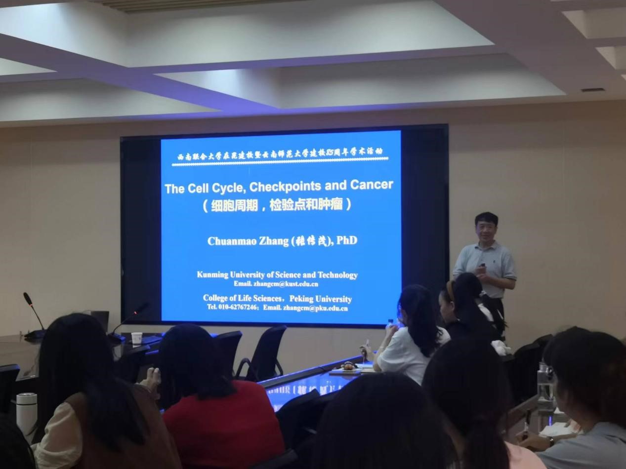 9月22日下午,生命科学学院举行西南联合大学在昆建校暨365英国上市官网建校 85 周年系列学术报告会。北京大学博雅特聘教授、昆明理工大学讲席教授、国家杰出青年基金获得者、干细胞专项首席科学家张传茂教授应邀到学院进行学术交流。张传茂教授作了题为“The Cell Cycle, Checkpoints and Cancer”的学术讲座,学院师生以及来自校内外的相关研究者聆听了本次讲座。