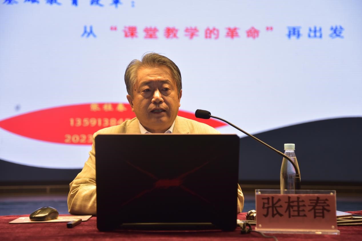 教育改革是国家发展的关键,更是谋划未来的基石。张桂春在讲座中谈到陶行知先生名言“知为行之始,行为知之成”。他认为认知是行动的先导,“成为名校长”就是要成为有思想的教学行动者。作为一名校长,要养成爱读书的习惯,学会基于教育使命进行理性思考,增强办学治校的领导力和执行力。他从基础教育“为什么改”“改什么”“怎么改”三方面为学员们详细解读了基础教育改革的重要性,以及在今后工作中该如何改进课堂教学,让学员们深受启发。