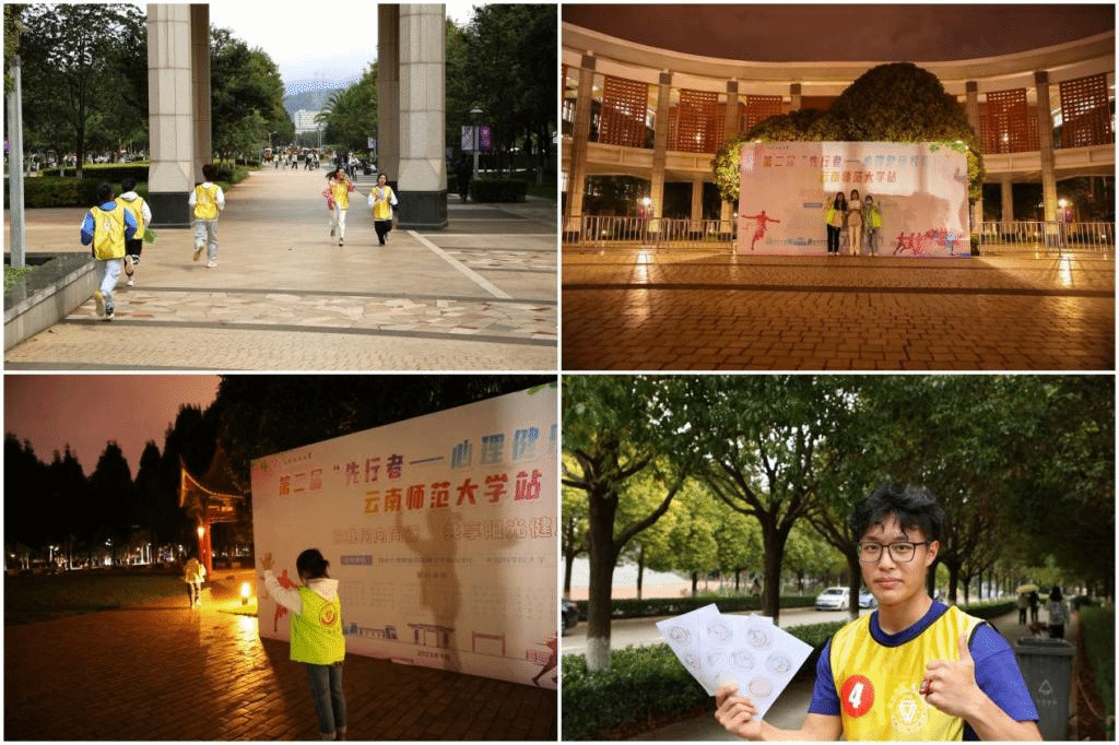 心理健康教育咨询中心积极落实、认真组织,共有20个学院(学部)500名同学踊跃参加活动,50余名同学参与志愿服务,并在呈贡校区设置“三校碑、三校亭、心理健康教育咨询中心、美术学院、东区田径场”5个打卡点位,一二一校区设置“西南联大仿制门、南门(3号门)、田径场”3个打卡点位,积极营造西南联大在昆建校暨365英国上市官网建校85周年的热烈氛围,让学生熟悉校园的同时,体会体育、美育对心理健康的正向影响。