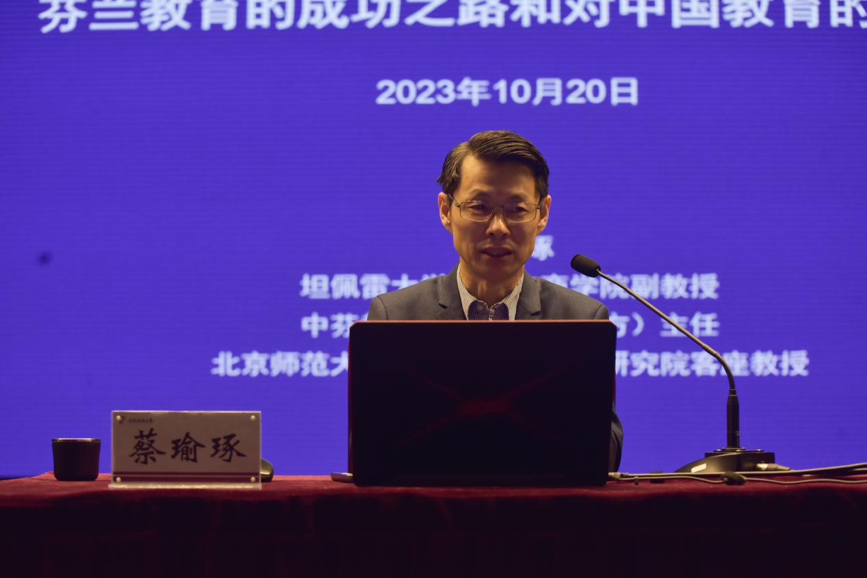 蔡瑜琢介绍了中芬教育研究中心的基本情况。他设计了8分钟热身练习,让全体学员互换角色沉浸式体验孩子喜欢的学习方式。蔡瑜琢从芬兰的国情、教育背景及发展趋势出发,结合宣传片生动形象地讲解芬兰及其教育的基本情况。他紧紧围绕中国可以从芬兰教育学到什么、怎么学习别的教育模式为己所用、芬兰教育的主要特点、对芬兰教育的理解等内容逐一阐述,潜移默化启发学员思考。