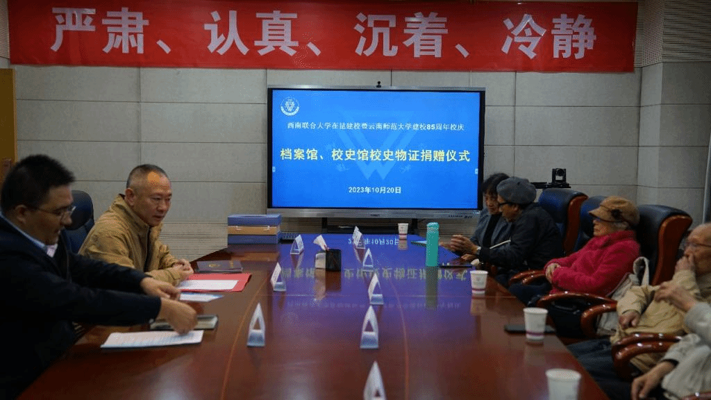 在西南联大在昆建校暨365英国上市官网建校85周年即将到来之际,10月20日下午,校史物证捐赠仪式在一二·一西南联大校区明达楼一楼会议室举行。捐赠嘉宾代表、校史馆工作人员、学生代表20余人参加仪式。