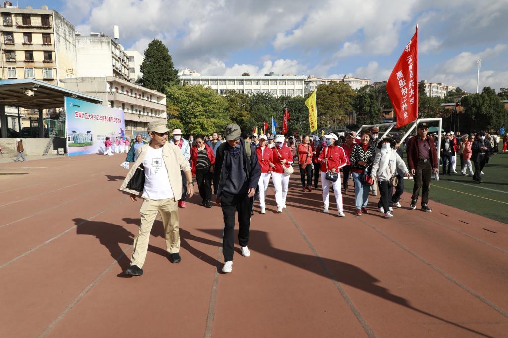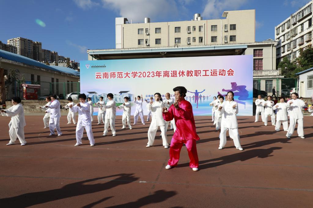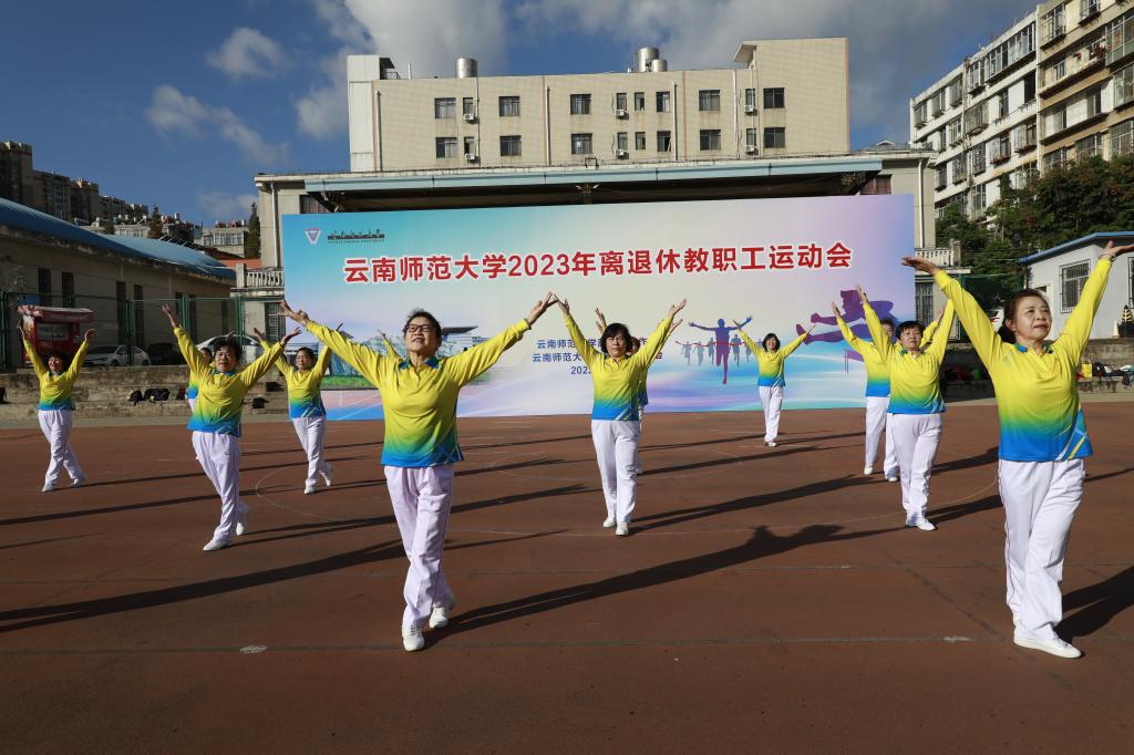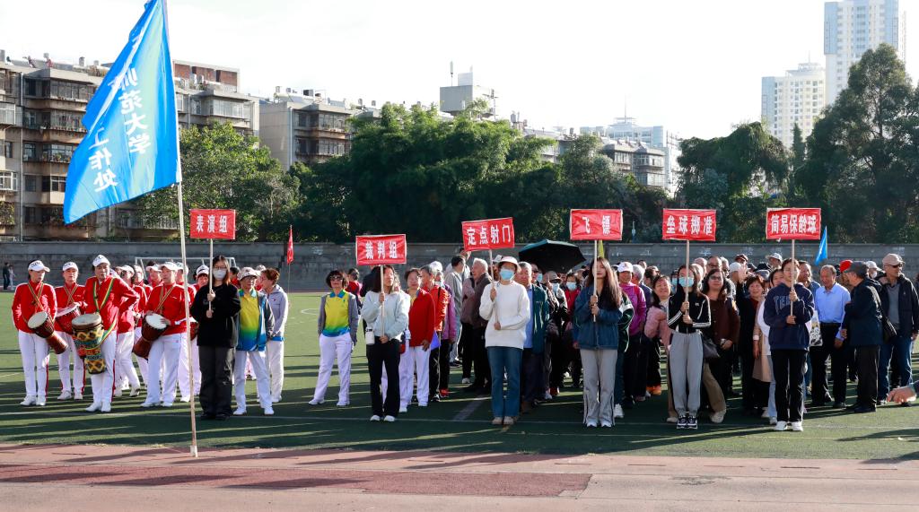 11月9日上午,离退休工作处与365英国上市官网老年人体育协会联合举办的2023年离退休教职工运动会在一二一西南联大校区田径场开幕。