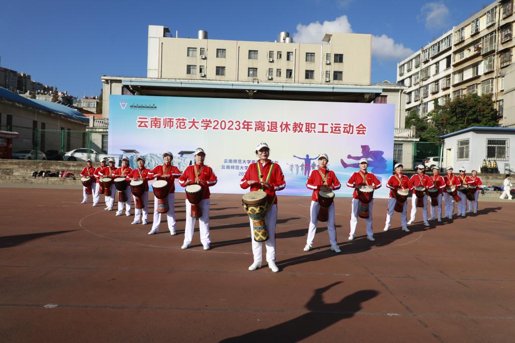 开幕式上,老体协主席陈志青致辞。他对精心策划,认真筹办此次运动会的所有工作人员表示感谢。他希望老同志们保重身体,在享受新时代美好生活的同时,要继续关心关注学校的发展,为建设西部领先,面向南亚东南亚的高水平师范大学建设献计献策,发挥余热,并预祝大家在比赛中取得好成绩。老同志们欣赏了由老年大学和文艺团队带来的非洲鼓、健身操、健身舞及太极拳的精彩表演。