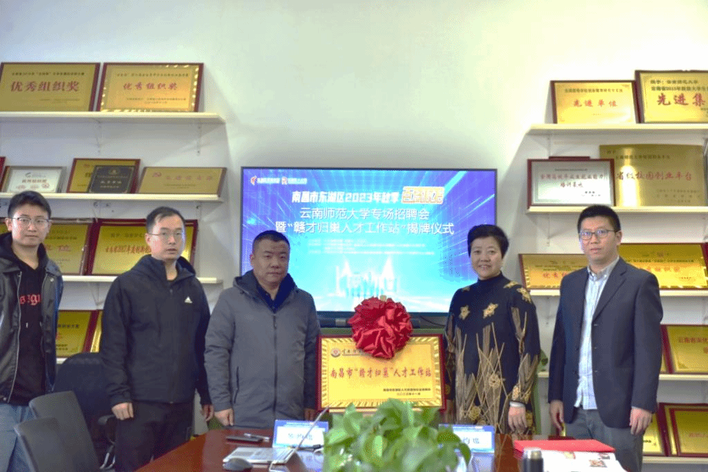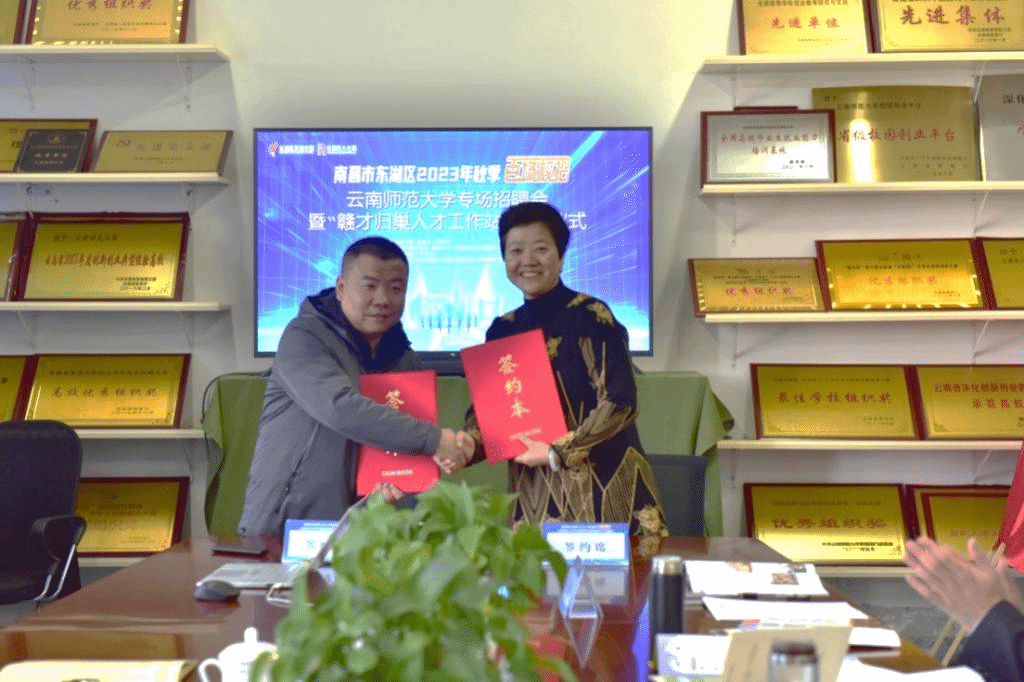 会上,双方在毕业生就业、实习实践、创新创业、人才培养等方面进行了深入交流,共同探讨了后续合作方向和实施方案,初步达成了合作意愿。双方代表签订“赣才归巢”战略合作协议,并举行“赣才归巢工作站”揭牌仪式。