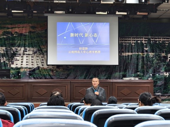 9日上午,赵建新给贡山县教育体育局全体教职工,带来了《新时代 新心态》的专题讲座。在近两个小时的讲座中,他用幽默风趣的语言将心理学知识与教师生活实例融合,让教师们深刻认识到关注学生心理问题、帮助学生树立健康心理的重要性以及全面渗透、多渠道、全方位加强对学生的心理健康教育的必要性。