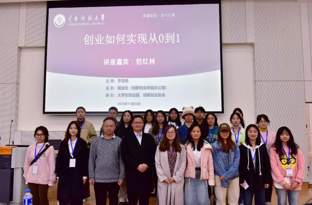 11月23日下午,第五十八期求道论坛在我校同析2幢104开讲。本次讲坛邀请到云南省大学生就业创业之星、云南奇林教育科技有限公司创始人范红林担任主讲嘉宾,就“创业如何实现从0到1”这一主题进行分享交流。本次讲坛由就业处创业实践科副科长李亚桃老师主持,并为嘉宾颁发嘉宾证书。