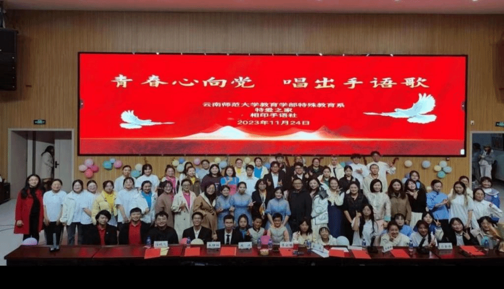 11月24日晚,教育学部在学前大楼301报告厅举行首届“青春心向党 唱出手语歌”手语舞大赛,学部党委副书记朱静虹,昆明学院特殊教育专业负责人周波,昆明西南联大研究院附属学校校长助理,依云分校执行校长金晶等出席本次活动。昆明学院学生代表及云南特殊教育职业学院“风之队”学生代表应邀参与本次活动。