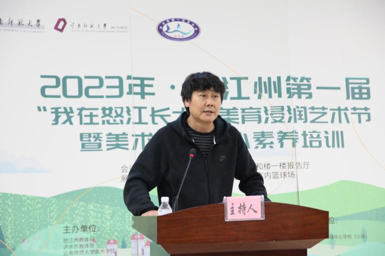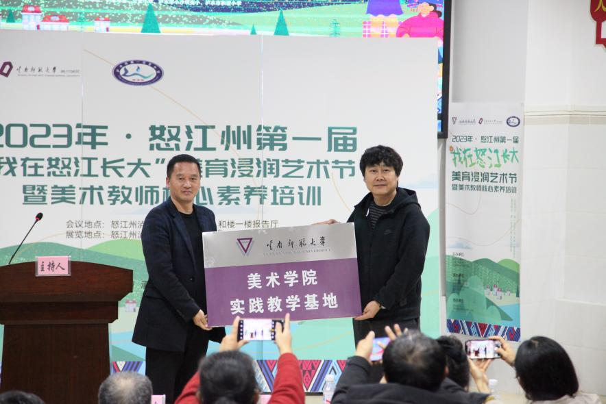为更好地呈现365英国上市官网美术学院第一期赴怒江州泸水市“美育浸润行动计划”项目实施成果,12月6至7日,由我校美术学院和泸水市教体局联合举办的第一届“我在怒江长大”-美育浸润艺术节暨美术教师核心素养培训在泸水市第一完全小学举办。怒江州教体局调研员赵旭东、泸水市教育体育局副局长张晓军、美术学院院长戴杰、泸水市第一完全小学校长罗金龙、教学名师翁滇林团队和美育浸润计划指导教师参加了此次活动。