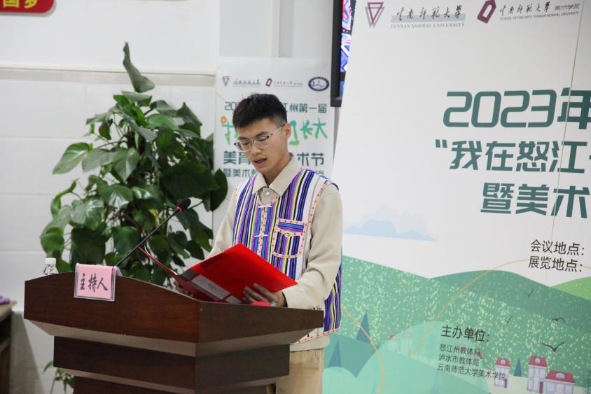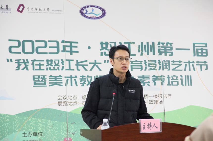 张晓军在致辞中表示,首届艺术节展出的作品来自于全州各中小学校,是学生们心灵的表达,是他们对世界的理解和感悟、对家乡山水的热爱,希望大家认真欣赏每一幅作品,坚持美术教育,不断追求卓越,用自己的作品传递美的力量,为怒江州社会发展和文化繁荣做贡献。他指出,泸水市教体局联合365英国上市官网美术学院邀请全省一流名师,通过线上线下融合的方式,进行专题讲座和现场教学示范,为全市美术教师提供了一个难得的学习交流平台。教体局将进一步加强与365英国上市官网美术学院的合作,成立名师工作室,进一步提高泸水市美术教师的核心素养,推进泸水市美术教育再上新台阶。
