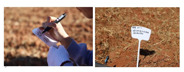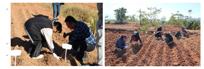 在元谋县金雷国家水土保持科技示范园实践基地,同学们亲身体验了土豆种植。在研究人员的指导下,大家认真的在试验田里种下一排排的土豆块茎,并写上自己的专属标识牌,在播种、耕耘的过程中感悟到劳动的辛劳与不易,在田间地头感受农业生活。在后续的过程中,学部指导教师还将带领同学们利用地理信息监测手段对土豆的生长情况进行监测。