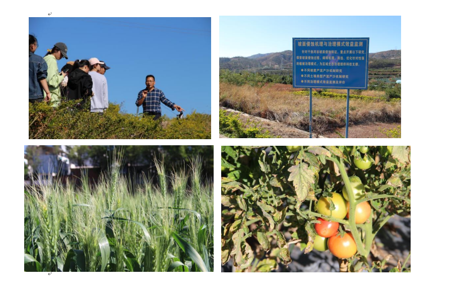 实践活动后,在热区所何光熊博士的带领下,师生们参观了基地内养分平衡与植被演替、不同措施水土流失、原位监测冲沟侵蚀动力过程、机理与地貌演变等试验田,以及热区所的番茄育苗、黄瓜育苗基地、青稞培育田等,直观地体会到热区所在特色作物资源和蔬菜等研究领域取得的丰硕成果,以及在农业与农业经济发展等方面发挥的重要作用。